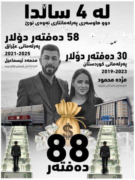 ژنە چالاکوانێکی سیاسی کورد ڕەخنەی توند لە خێزانێکی هەرێم دەگرێت کە ژن و پیاوێک لەماوەی چوار ساڵدا، 88 دەفتەریان لە پەرلەمان وەرگرتووە.