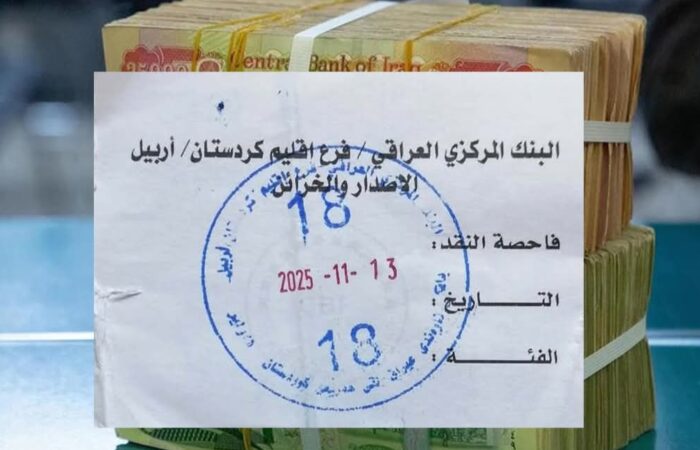 بەڵام ئەو پارەیەی لە بانکەکان بۆ موچەی مانگی یەک بە موچەخۆرانیان داوە, کاغەزێکی لەسەر بووە کە مۆری بانکی ناوەندی عێراق لقی هەولێری لەسەرە و بەرواری 3 ی 11 ی 2025 ی لەسەرە .
