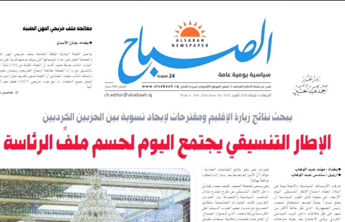 بەپێی ئەو زانیارییانەی رۆژنامەی (الصباح) بڵاویکردۆتەوە، ئەمڕۆ چوارچێوەی هەماهەنگی کۆبوونەوەیەکی یەکلاکەرەوە دەبەستێت تایبەت بە پۆستی سەرۆک وەزیران و سەرۆک کۆمار.