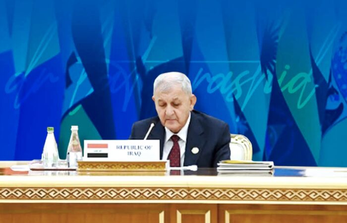 دوای ئەوەی سەرۆک کۆماری عێراق گەیشتە عشقئابادی تورکمانستان بۆ بەشداریی لە کۆڕبەندی ساڵ بۆ ئاشتی و متمانە، وتارێکی پێشکەشکردو داوای لەکۆمەڵگەی نێودەوڵەتی کرد کۆتایی بەجەنگ بهێن.