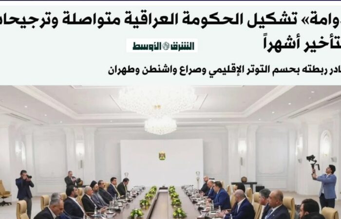 بەپێی راپۆرتێکی رۆژنامەی (الشرق الٲوسط)، پێکهێنانی حکومەتی عێراق دوادەکەوێت و بەمنزیکانە پێکنایەت.