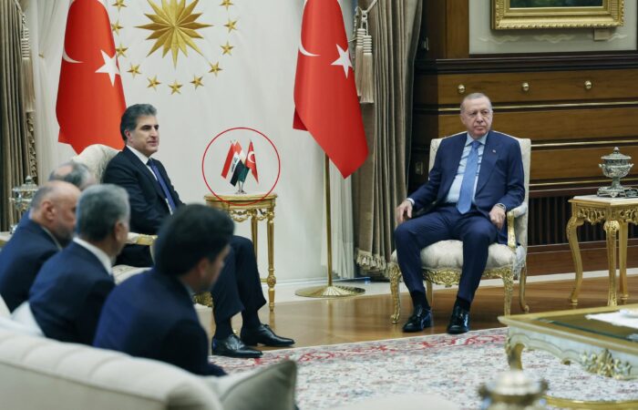 چاویارنیوز _ میدیاکان و شارەزایانی سیاسی هەرێم ڕەخنەی ئەوە لە دیدارەکەی نێچیرڤان بارزانی سەرۆکی هەرێم و ئەردۆغان سەرۆک کۆماری تورکیا دەگرن کە دەوڵەتی تورکیا ئاڵای هەرێمی کوردستانی لەپشتەوەی ئاڵای عێراق و تورکیا دانراوە.