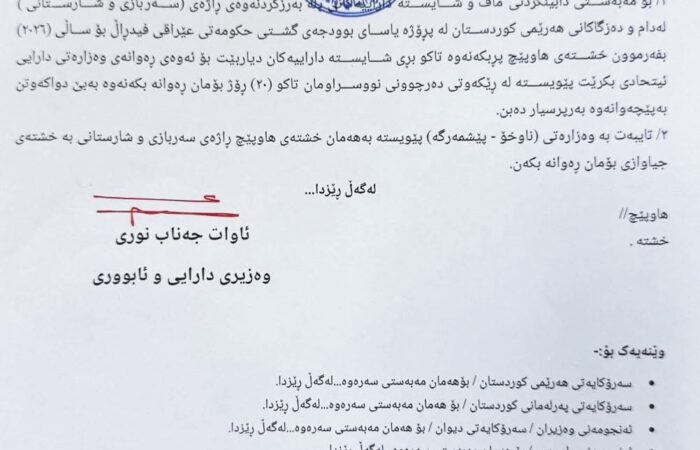 چاویارنیوز _ بهگوێرهی نوسراوەکە بۆ دابینكردنی ماف و شایسته داراییهكانی پلهبهرزكردنهوهی راژهی سهربازی و شارستانی له دامودهزگاكانی ههرێم له چوارچێوهی پرۆژهیاسای بودجهی گشتیی فیدڕاڵی بۆ ساڵی 2026 بفهرمون بۆ پڕكردنهوهی خشتهی پلهبهرزكردنهوه تا شایسته داراییهكان دیاریبكرێن.