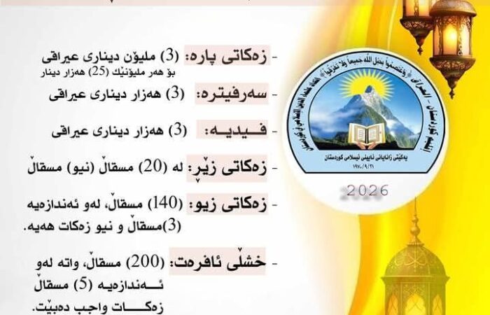 یەکێتیی زانایانی ئیسلامی لە هەرێمی کوردستان بڕی زەکات و سەرفیترەی بۆ مانگی رەمەزان بڵاوکردەوە.