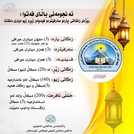 یەکێتیی زانایانی ئیسلامی لە هەرێمی کوردستان بڕی زەکات و سەرفیترەی بۆ مانگی رەمەزان بڵاوکردەوە.